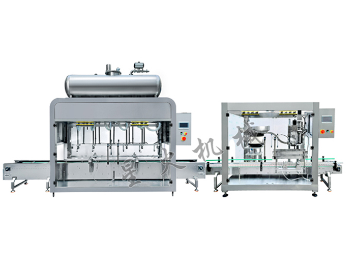 由稱重傳感器平臺(tái)在微電腦程序的控制下完成灌裝計(jì)量,是一款高精度,高技術(shù)含量集機(jī)、電、儀一體化新型產(chǎn)品。其改變了傳統(tǒng)流量計(jì)式灌裝機(jī)定量精度及無(wú)法對(duì)較黏液體的計(jì)量缺陷。灌裝時(shí)先去皮重,物料在注入容器時(shí)采用先快速灌裝再慢速灌裝(采用雙速灌裝)修正計(jì)量,既可有效提高灌裝速度,也可以提高灌裝精度。操作者只需將容器放在輸送滾筒上,輸送至灌裝區(qū)域通過(guò)光眼檢測(cè)定位后桶口對(duì)準(zhǔn)灌裝嘴,打開(kāi)灌裝閥門進(jìn)料,當(dāng)達(dá)到設(shè)定的計(jì)量時(shí),閥門自動(dòng)關(guān)閉,設(shè)備停止灌裝,灌裝嘴自動(dòng)密閉。灌裝頭上升,完成灌裝動(dòng)作。本機(jī)適用于食品、飲料、調(diào)味品、乳制品、油脂等行業(yè)的各種有黏、無(wú)黏、有腐蝕性、無(wú)腐蝕性、有泡沫、無(wú)泡沫等物料的定量稱重灌裝。